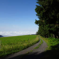 Auf dem Chrischonaweg nähere ich mich langsam der Grenze zur Schweiz. Der Westweg zweigt einige Meter vorher nach Süden ab. Weil das Wetter in den vergangenen Tagen recht trocken war, wähle ich denOkumaya devam et