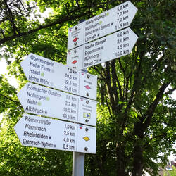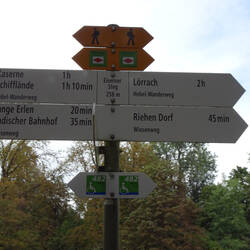 Bis zum Badischen Bahnhof in Basel, dem Ziel des Westweges, spaziere ich gemütlich am Rheinufer entlang. Nach dem Unterschreiten der Gleise und einer Fernstrasse folge ich dem Fussweg auf derOkumaya devam et