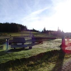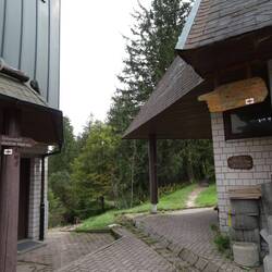 Dem Abstieg zum Nationalparkzentrum Ruhestein folgt ein knackiger kurzer Aufstieg zur Skisprungschanze.