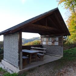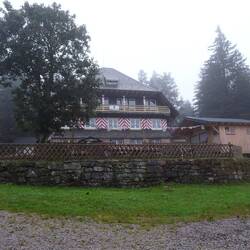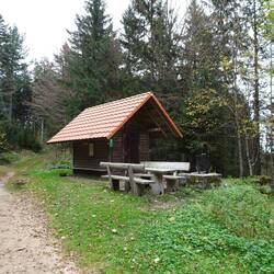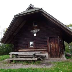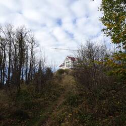 Beim Abstieg von der Badener Höhe passiere ich das Naturfreundehaus Badener Höhe, wo ich meine Mittagsrast bei leckerer Kürbissuppe und Tee mit Kuchen einlege.