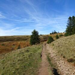 Im Belchenhaus lege ich eine Pause ein und lasse mir den Kuchen schmecken. Anschließend mache ich mich an den Abstieg in Richtung Haldenhof. Der Weg bis fast zur Richtstatthütte verläuft aufもっと詳しく