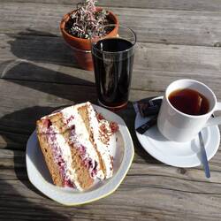 Den Abstieg vom Feldberg unterbreche ich sogleich an der Wilhelmer Hütte für ein Stück Schwarzwälder Kirsch Torte. Weiter führt mch der Westweg an der großen Baumliege mit Blick auf Todtnaubergもっと詳しく