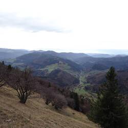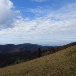 Gut gestärkt verlasse ich das Wanderheim, um den Abstieg nach Titisee zu beginnen. Auf dem Weg gibt es Ausblicke sowohl auf die Feldbergregion als auch auf Hinterzarten mit seinenもっと詳しく