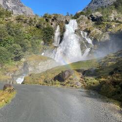 Zwischen zwei Gletscherarmen und jeder Menge Bergen… direkt unter einem riesigen Wasserfall 💦💦