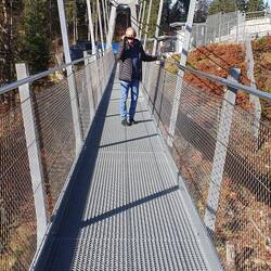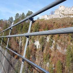 Ein eimaliger Bergbahnlift, schöne Ruinen mit super Fernsicht und das Highlight - die gewaltig hohe Hängebrücke. Feines Essen mit Kaffee und Kuchen an warmen Sonnenschein.