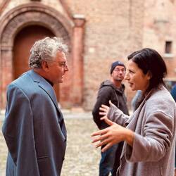 Unsere Bilder sind schon mal in Ferrara angekommen und Barbara und Christoph arbeiten emsig an der Aufhängung in der Galleria del Carbone!