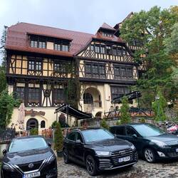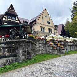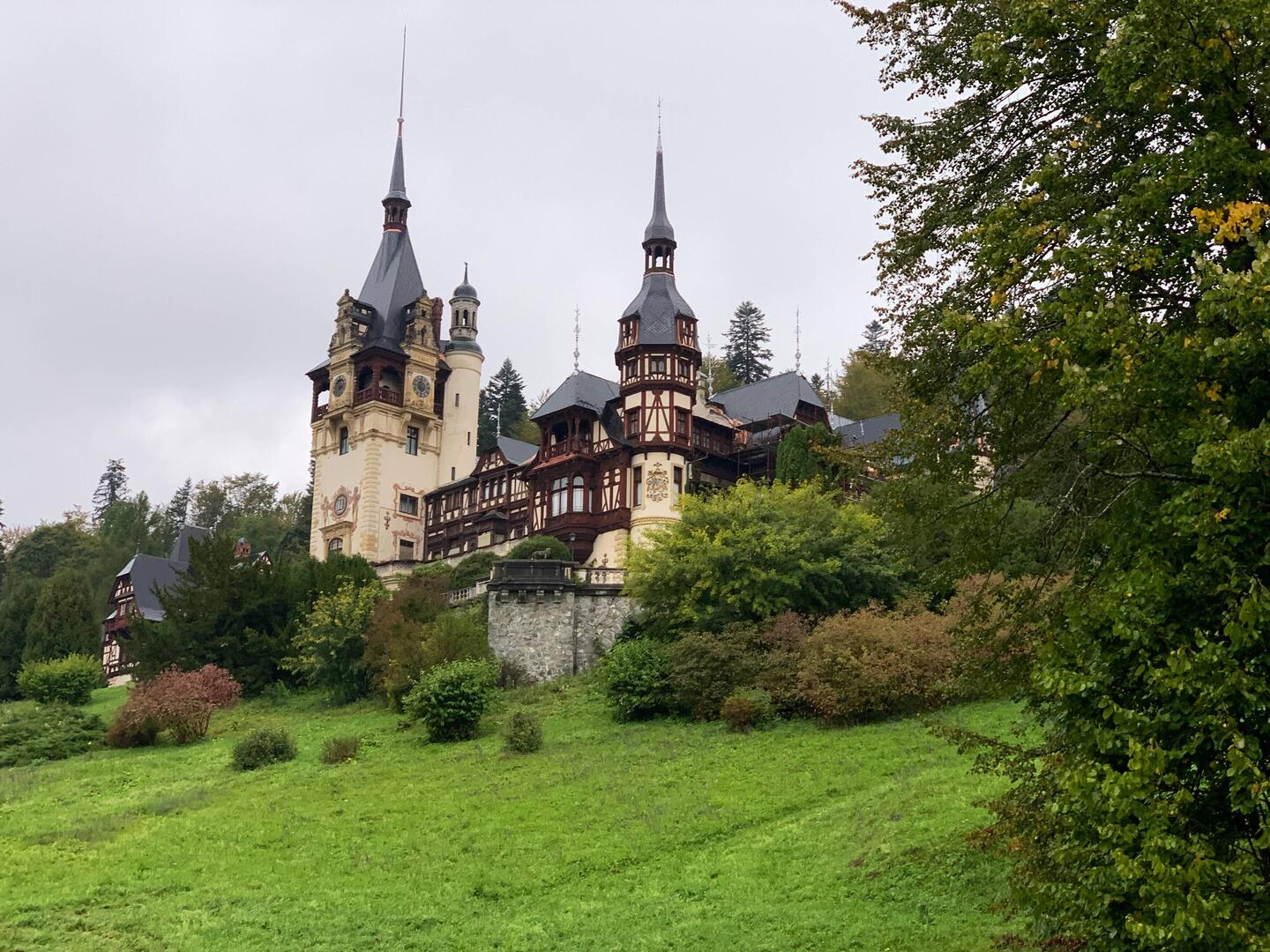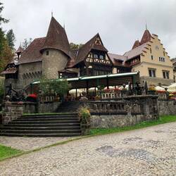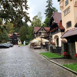 Auf unserer Fahrt zum Schloss Pelesch hat uns der Regen eingeholt. Leider haben wir es nur von außen gesehen, es hatte geschlossen. Die Gebäude in der Umgebung haben uns ebenfalls fasziniert.