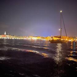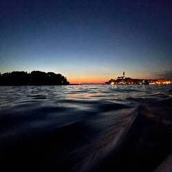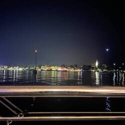 Da es inzwischen schon langsam Abendbrotzeit ist, werden wir uns in Schale und des Beiboot wird startklar gemacht, damit wir nach Rovinj fahren können, wo Stadtbummel und Essen auf dem Programm steht. Wir krabbeln also alle in unser kleines Dingi, was sich mit dem kleinen Elektromotor ganz schön anstrengen muss, um uns 6 zum Ufer zu befördern. Wir passieren die Marina und den Hafen bevor wir einen geeigneten Platz zum anlegen gefunden haben. Von hier ist sind es nur wenige Schritte bis zum ersten Eisladen, wo wir endlich nachholen können, was uns mittags verwehrt blieb. Yummi - dafür hat sich die Geduld echt gelohnt. Wir machen anschließend einen kleinen Stadtrundgang, hinauf zur Kirche der Heiligen Euphemia, welche auf einer Anhöhe liegt, von wo aus man einen perfekten Ausblick auf die Bucht hat. Wieder ein Punkt auf der Urlaubs-Checkliste erledigt. Nun fehlt nur noch ein gutes Essen, um den Tag abzurunden. Das ist auch schnell gefunden und wir schlemmen die feinsten Sachen, bevor wir den Verdauungsspaziergang durch die Altstadt zurück zum Dingi antreten. Da es inzwischen schon dunkel ist wird die Rückfahrt zum Katamaran noch einmal spannend, da wir kein Licht haben und Rüdi und Nette mit dem Handytaschenlampen die Orientierungsleuchten simulieren, während Gunthi wieder einmal souverän den entgegenkommenden Ausflugsbooten im Slalom ausweicht, während die arme Anne tausend Tode stirbt, Holli sie beruhigt und ich mit der Langzeitbelichtung der Fotoapp kämpfe. So hat eben jeder was zutun…Lue lisää