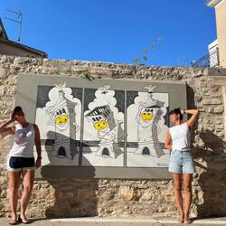 Nachdem Rüdi und ich gestern Abend den Versuch gestartet hatten, an Deck zu schlafen, dies allerdings durch die wohl mieseste Coverband, welche vom Ufer aus, die Nacht durchschalte, unmöglich gemacht wurde, haben wir die erste Nacht selig in unserer Kabine geschlafen. Das klicken der Piezo-Zündung des Herdes weckte mich dann gegen 06:15 Uhr und war deutliches Indiz dafür, dass den Kapitän, nach dem ersten Kaffee des Tages gelüstete. Dieses sollte er auch gaaaanz in Ruhe genießen, weshalb ich mich noch einmal umdrehte und noch eine halbe Stunde liegen blieb. Dann war die Verlockung einer Runde Yoga an Deck doch zu groß und ich schlich auf Zehenspitzen hinauf. Wo ich zu meiner Überraschung auch ganz allein war. Zehn Sonnengrüsse später, war Gunther auch wieder an Deck und Nette stand ebenfalls schon in den Startlöchern zum Morgensport. Da sie sich stoisch weigert mit Yoga zu machen, war das in ihrem Fall dann Schwimmen. Na wenn sie schon keinen Sport mit mir macht, dann wenigstens ich mit ihr. Also nix wie rein ins kühle Nass. Die Sportgruppe bekam peux à peux immer mehr Zuwachs und dann drehten alle ihre Kreise ums Boot, bis auf unseren „Bücherwurm“ Rüdi, der sich wieder in seinen Thriller vergraben hatte. Die Session wurde wieder durch einige „Arschbomben“ bereichert, was am gestrigen Tag durch Rüdi schon umfangreich praktiziert wurde. Jetzt hatten wir uns das Frühstück aber verdient. Holli und ich hatten uns zum Küchendienst eingetragen und während wir alles vorbereiteten, schipperte uns Gunthi aus der Bucht, weil wir lieber auf See frühstücken wollten. Wir waren noch gar nicht lang unterwegs, da wurde das Frühstückspersonal durch hektisches Schreien aus der Küche an Deck gelockt. Denn Rüdi hatte mal seine telepathischen Connections zu seinen grauen Kumpels genutzt und uns Flippers großen Bruder als Begleiter organisiert. Ein wirklich großer Delfin eskortierte uns backbord und wir strahlten alle samt bei diesem Anblick, während Rüdi nochmal ganz explizit betonen musste, dass er das organisiert hat, da es einen der wichtigsten Punkte auf unserer Urlaubscheckliste war. Na wenn dem so ist - haben wir für die kommenden Tage noch ein paar mehr dieser Treffen bestellt, wobei wir bei der Auswahl der „Flossenträger“ flexibel wären und auch mit Walen einverstanden wären. Es bleibt also spannend. Nach dem Frühstück, was dann eine Weile süßes Nichtstun dran und es wurde gelesen, gesonnt oder einfach genossen, während wir weiter Richtung Rovinj tuckerten. Obwohl das tuckern eher metaphorisch gemeint war, denn der Katamaran ist sehr leise, allerdings benötigen wir immer den Motor, da der Wind zum Segeln nicht ausreicht. Dafür kann man sicher umso besser SUP‘en. Aber dafür müssen die 4 Boards erstmal aufgepumpt werden. Das machen Gunthi und ich dann mit vereinten Kräften. Dann wäre ja jetzt alles vorbereitet, um in der Bucht vor Rovinj eine Mooring zu suchen. Für die „Unwissenden“ unter Euch, gibt es jetzt einen kleinen „Wieder-was-dazugelernt-Beitrag“.
