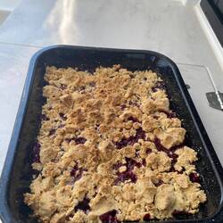 Ja - Backen!!! Ich kredenze uns einen Pflaumen-Crumble mit Walnuss-Streuseln. Eine feine Leckerei. Übrigens haben wir einen recht hohen Krankenstand an Bord. Holli hat einen dicken Knöchel und wahrscheinlich einen Bänderriss, bei Rüdi ist das Knie ganz dick, so dass er kaum laufen kann und Gunthi hat Schulter. Wenn das so weitergeht, müssen wir wohl bald neue Besatzung anheuern und den Rest den Fischen zum Fraß vorwerfen… hihihi