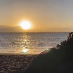 Natalie ist heute etwas früher als ich aufgestanden, weil unser Platz direkt am Meer ist und die Sonne um ca. 8 Uhr aus dem Meer aufgeht.