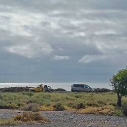 Dort wo es sonst so trocken ist, hat es die letzten zwei Nächte ordentlich geregnet. Das hatten die zwei Frauen im Camper "neben" uns auch nicht erwartet, als sie sich in strandnähe an einLäs mer