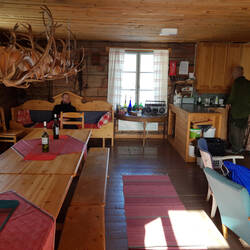 Die Hütte ist einfach, hatte einen Kamin und Tisch in der MitteRead more