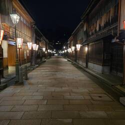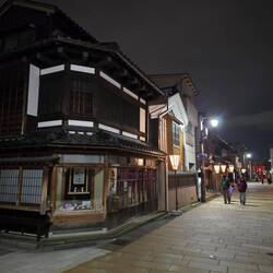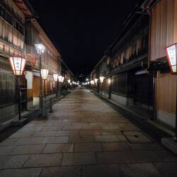 Serata al distretto delle geisha. Molto suggestivo con le lanterne accese. Il più grande e importante dei tre distretti storici delle "chaya" (case da tè) di Kanazawa. Qui, fin dal 1820, le geishaLeggi altro