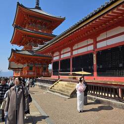 Autobus 207 e arriviamo all'altro tempio in programma per oggi. Anche questo è uno spettacolo per gli occhi. Il Kiyomizu-dera, il "Tempio dell'Acqua Pura", è arroccato sulla collina di Higashiyama,Leggi altro