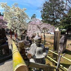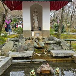 Usciti dal Parco visitiamo questo bel tempio. Entrando, la prima cosa che vediamo sono i suoi spettacolari ciliegi piangenti (shidarezakura). A differenza dei classici alberi che si trovano nel parco,Læs mere