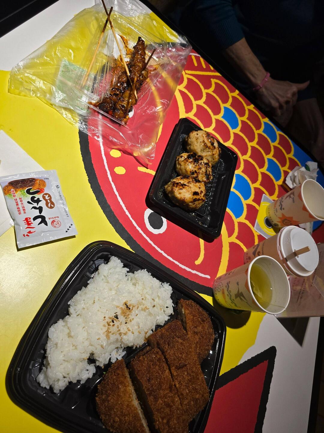Zero voglia di uscire. Stanchezza alle stelle. Il supermercato Fresco di fronte l'hotel ci viene in soccorso. Microonde, the, zuppa di miso ed acqua messa a disposizione dall'hotel e via di cena conLæs mere