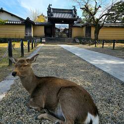 Nel Parco di Nara, che circonda il Kofuku-ji, vivono oltre 1.200 cervi della specie Sika. Per secoli sono stati venerati come messaggeri divini del Santuario Kasuga.