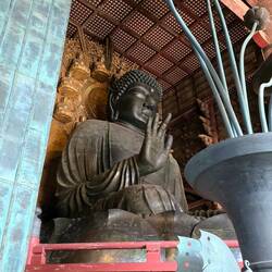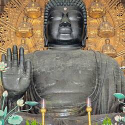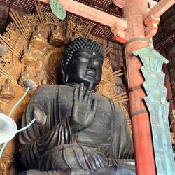 Si trova all'interno del tempio Todai-ji, una delle strutture in legno più grandi al mondo, e la sua storia è costellata di numeri incredibili e leggende curiose. Completata nel 752 d.C., la statuaLæs mere