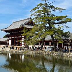 Alla fine della strada prendiamo una scala a sinistra del laghetto per andare al Kofuku-ji. Il Kofūku-ji rappresenta uno dei vertici dell'architettura buddista giapponese. Fondato originariamente aLæs mere
