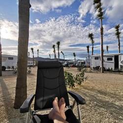 Hier ist der Ort zwar mausetot, aber im Vergleich zu Peniscola geradezu “nett;' Der Stellplatz auch ganz schön. Platz genug, Palmen, Restaurant, Pool, Bar etc 3,30 für ein Bier ist aber schon heftig.