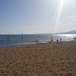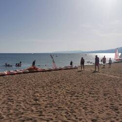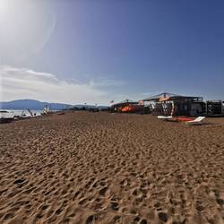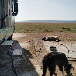 Ich habe heute einen der 2-3 Plätze am Strand bekommen. Neben mir total nette Italiener, die sogar etwas Deutsch können und die Hunde bespassen. Spanisch sprechen sie auch