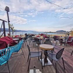 Der Badeort hier ist hübsch Guter Parkplatz fast für mich allein und tolle Bars. Drei davon hatten geöffnet und in jeder saßen 2-4 Menschen. Auf einem Samstag!