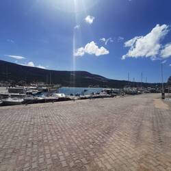 Immerhin. Ein paar Kilometer habe ich geschafft. Ich bin gleich auf dem ersten Platz meiner Liste geblieben. Kleine Hafenstadt mit Läden, Restaurants und vielen Möglichkeiten zu stehen.