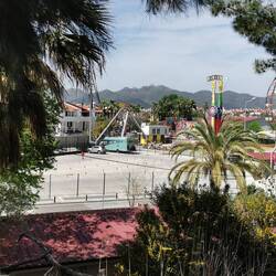 Neben dem Parkplatz ist ein Vergnügungdpark ua mit einer Schiffschaukel. Laut, sehr laut...