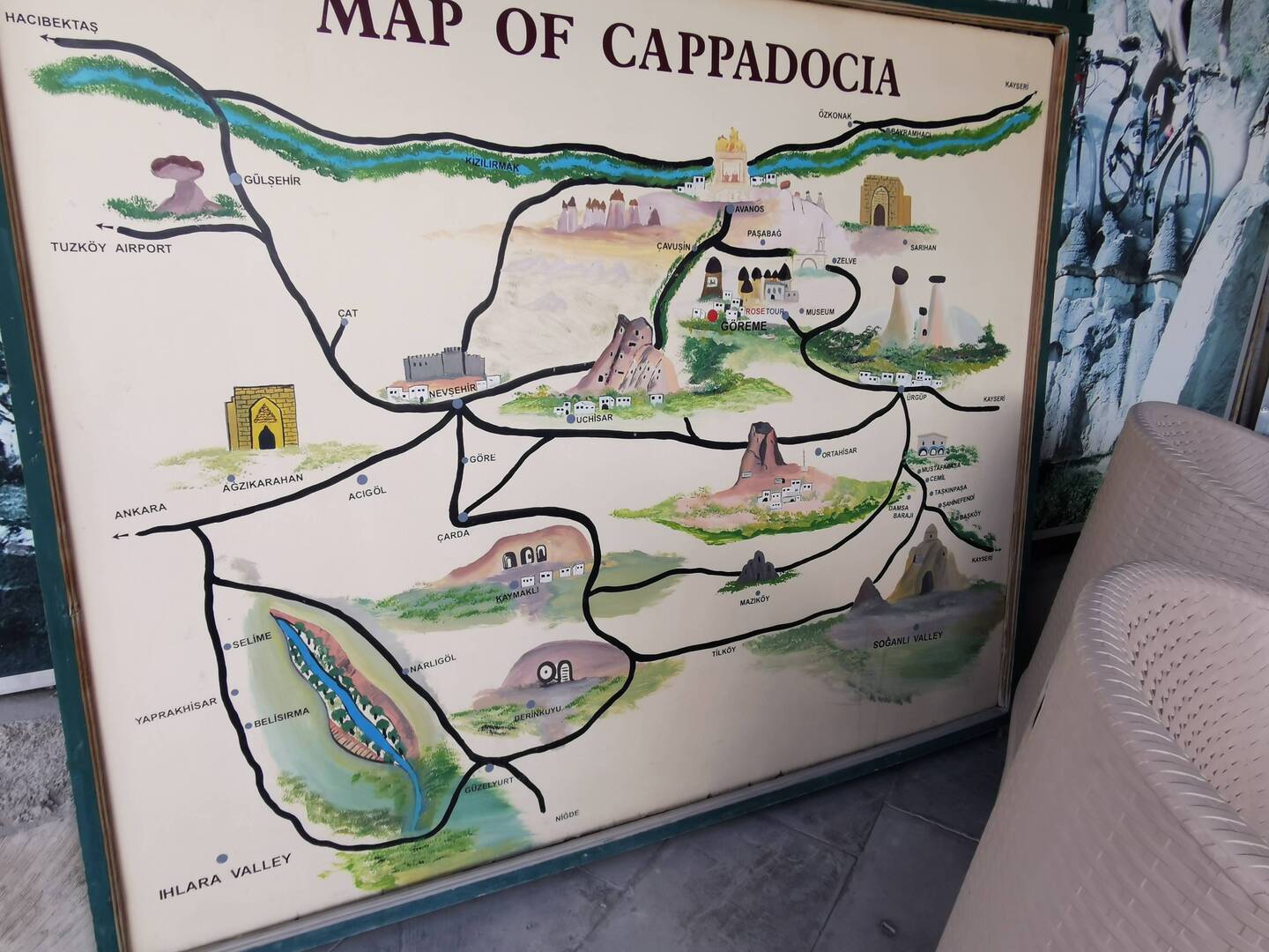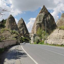 Nett anzusehen, da zwischen den Felsen gelegen, gibt es unzählige Anbieter von Ballonfahrten, Quadverleiher, Pferdeställe, Ausflüge, Hochzeitsshootings und vieles mehr. Dazu Souvenirshops, Hostels, Schmuckhändler, und Restaurants ohne Ende. Preislich aber auch ohne Ende. Ein sauteures Städtchen.