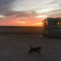 Gut. Nach 6 Stunden Fahrt werde ich heute nichts mehr machen und der Wind kommt eh erst in ein paar Tagen wieder. Die Fahrt war anstrengend, da man immer auf Kamele aufpassen mußte, die gerne auf und neben der Straße rumliegen und von der Wüste kaum zu unterscheiden waren.