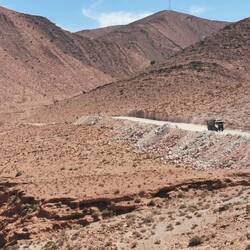 4.20 Std für 121km. Die Strecke, als Straße konnte man sie oftmals nicht wirklich bezeichnen, ging über den Anti-Atlas. 1600m hoch und 600m runter, da die Stadt auf 1000m liegt, was die nächtliche Kälte erklärt