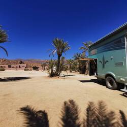 Hier in einem großen Palmenhain kann man perfekt stehen, zumal nur noch sehr wenige Womos vor Ort sind. Platz für hunderte, jetzt keine 20.