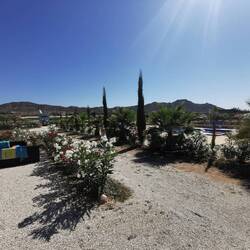 Zwei Stunden später dann endlich, wieder über Totana, nach Aspe, wo ein Stellplatz gegen Hand Angebot auf mich wartete. Es geht um entspanntes Unkrautzupfen.