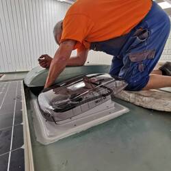 Lüfter in Totana eingebaut und diverse Kleinigkeiten repariert. Lüfter sieht nicht schön aus, da kleiner als der alte, aber er zieht ordentlich Luft raus.