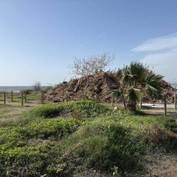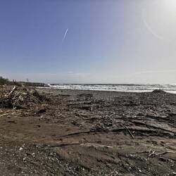 Erstaunlich. Der Parkplatz vom Hundestrand war leer. In Anbetracht der Tatsache, dass die drei legalen Stellplätze vorher voll aussahen um so mehr