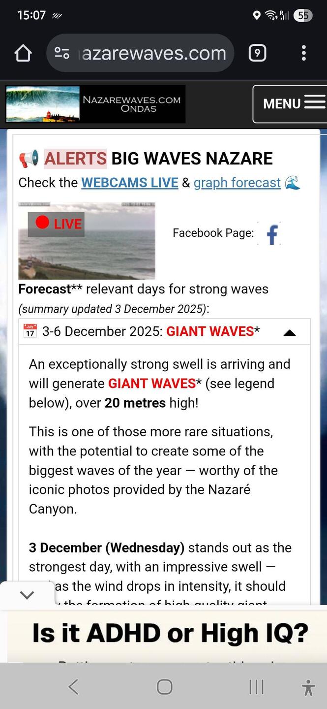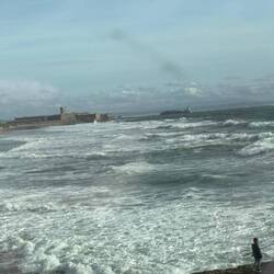 Plan Sonntag nach Lissabon, aber ich bin über die Wellenvorhersage für Nazaré gestolpert, weshalb wir gestern hierher gefahren sind, um gigantische Wellen zu sehen.