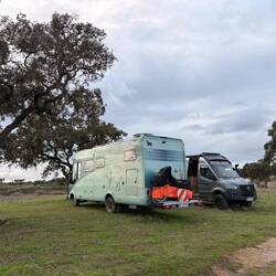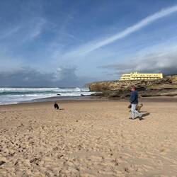 Ich hätte zwar bei Heike und Christian schlafen können, aber da Ingrun auch nach Bombarral gekommen ist, haben wir es mal für die drei Nächte mit drei Hunden im Sprinter probiert. Ging prima, wenn auch etwas beengt.
