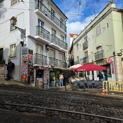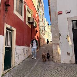Schön von Seixal aus 20 in Minuten mit der Fähre über den Tejo, wo man direkt im Zentrum landet und dann die Hacken abgelaufen, da man mit Hunden weder Bus noch Straßenbahn fahren darf. Das wussten wir aber vorher.
