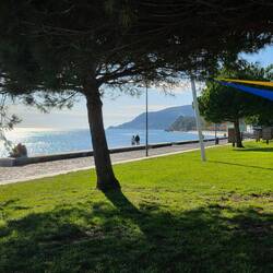Der Vorhersage entsprechend leer war der Platz, aber nach dem Regen in der Nacht und am Vormittag, ist hier jetzt strahlender Sonnenschein.