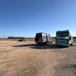 Da ich mal entsorgen wollte, stehe ich heute bei einem kleinen Dorf auf einem kostenlosen Stellplatz mit VE. Spannend ist es nicht, aber die Hunde konnten rennen.