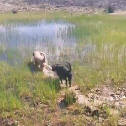 Die Hunde können hier prima toben, wenn sie wollten, aber zumindest haben sie schon gebadet.