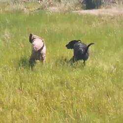 Leider habe ich vergessen, daß die Hunde sehr wohl abhauen, wenn ich nicht da bin. Alle beide über die Tür und die Straße runter gefetzt, nachdem wir schon 10 Minuten weg waren. (Ist hier ein Dorf)
