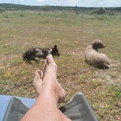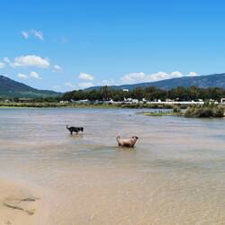 Die Hunde kommen lauftechnisch auf ihre Kosten und ich notgedrungen auch. Da das Wetter eher sommerlich wird, bleibe ich ein paar Tage hier und trödel demnächst die letzten 40km zur Küste, kaufe nochmal beim Aldi in San Antonio das ein, was es in Spanien nicht gibt und fahre nach Ayamonte rüber.