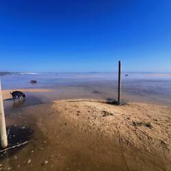 Der Weg an den Strand hat sich nicht wirklich gelohnt, wenn man davon absieht, das die Hunde im feuchten Sand lagen. Zwei von zwei Chiringuitos sind von der Polizei geschlossen worden. Da auch der Camping kein Restaurant hat, war es das zum Thema lecker, oder auch nicht essen zu gehen.