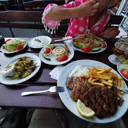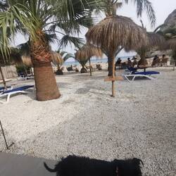 Dementsprechend sitze ich jetzt in meiner Lieblingspinte, ggü des Appartements, in dem ich im Februar gewohnt habe, am Meer. Der Strand ist wegen Verschönerung gesperrt, aber das stört nur die Hunde.
