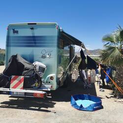 Eigentlich wollte ich auf einen tollen Platz nördlich von Aguilas, ab es ist ja Sonntag. Decathlon hat heute zu (Da lobe ich mir Portugal) Ich brauche unbedingt ein Kinderplanschbecken, weil das Meca gefallen könnte