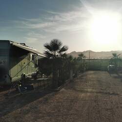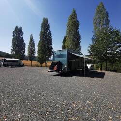 Gerade mal 70km gefahren erst mal die falsche Zufahrt zum Stellplatz genommen (Höhenbegrenzung) und mit Krampf, einem Rad in der Luft und massig Staubwolken gewendet. Ich liebe meinen Heckantrieb. Da muß man vorher nicht aussteigen und gucken, sondern kann sich direkt in die Scheiße reiten, bzw fahren.