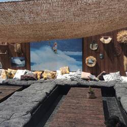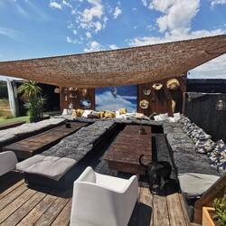 Netter, kleiner Platz am Wasser. Lustige Menschen und recht felsig - ergo keine Angler und kein rumliegenden Haken - mit kleiner Strandbar (Heute Ruhetag), in der ich schon meinen Sitzplatz für morgen gefunden habe.