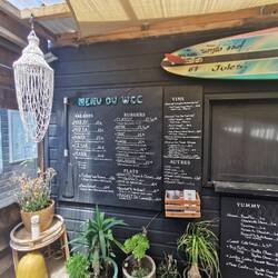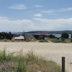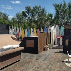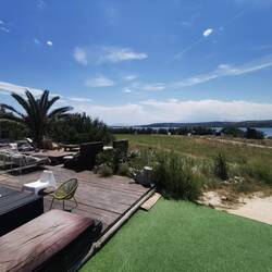 Netter Stellplatz am Etang de Leucate. Hier bleibe ich erst einmal und schaue mir in Ruhe die anderen Möglichkeiten in der Umgebung an. Wind ist die nächsten Tage eh nicht angesagt. Nette, chillige Surfschule mit Bar, die heute leider zu hat. Morgen dann